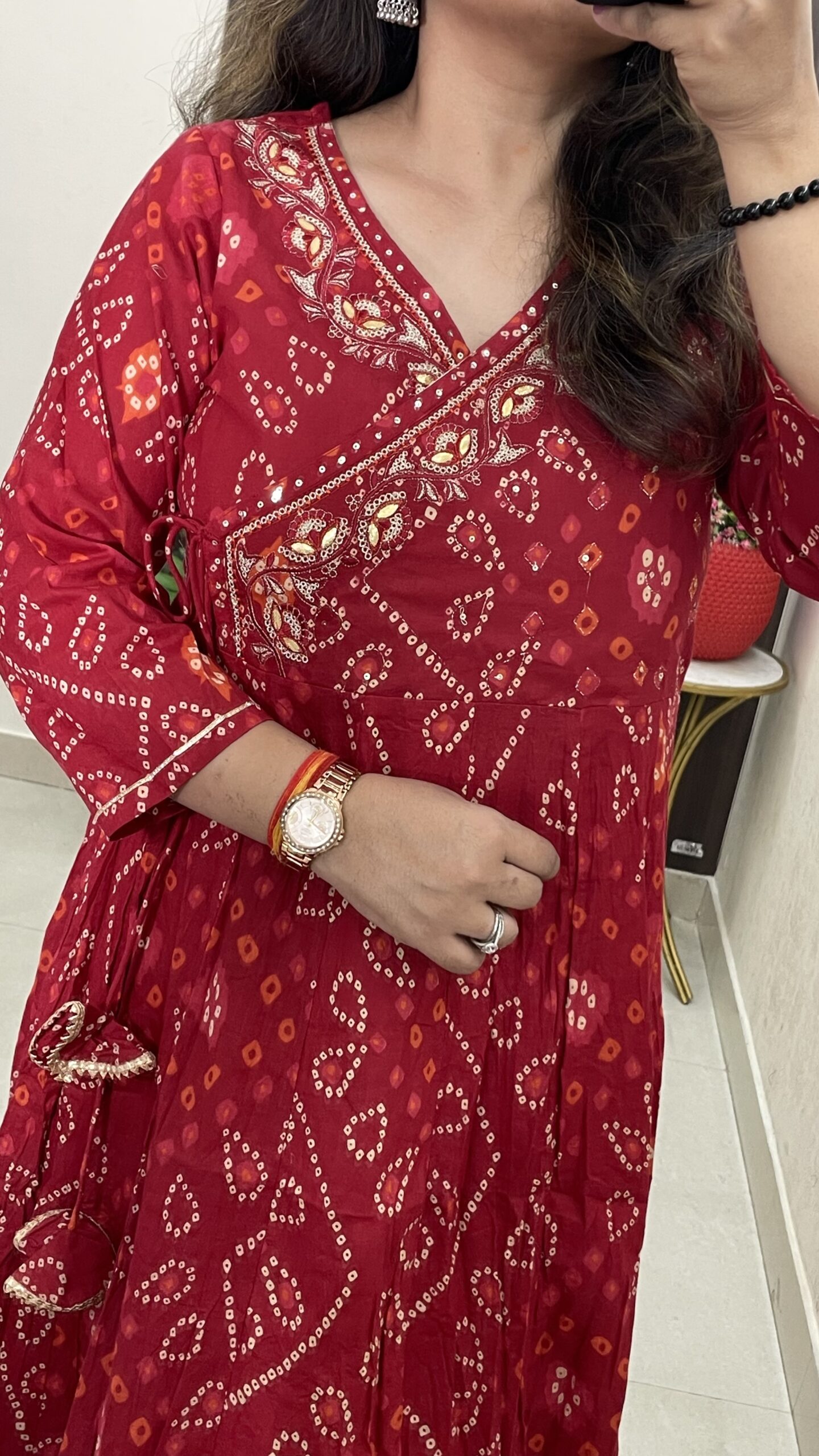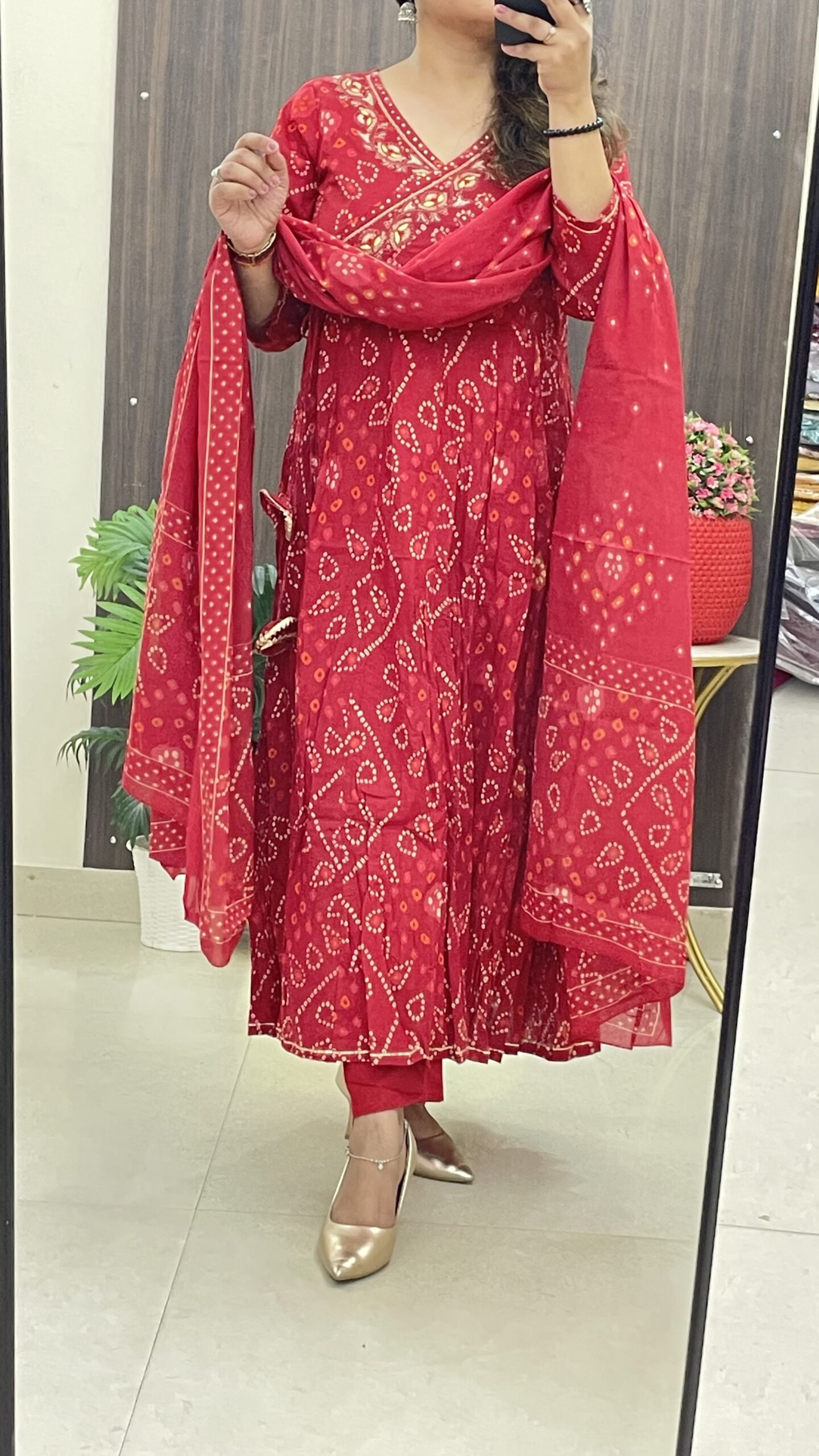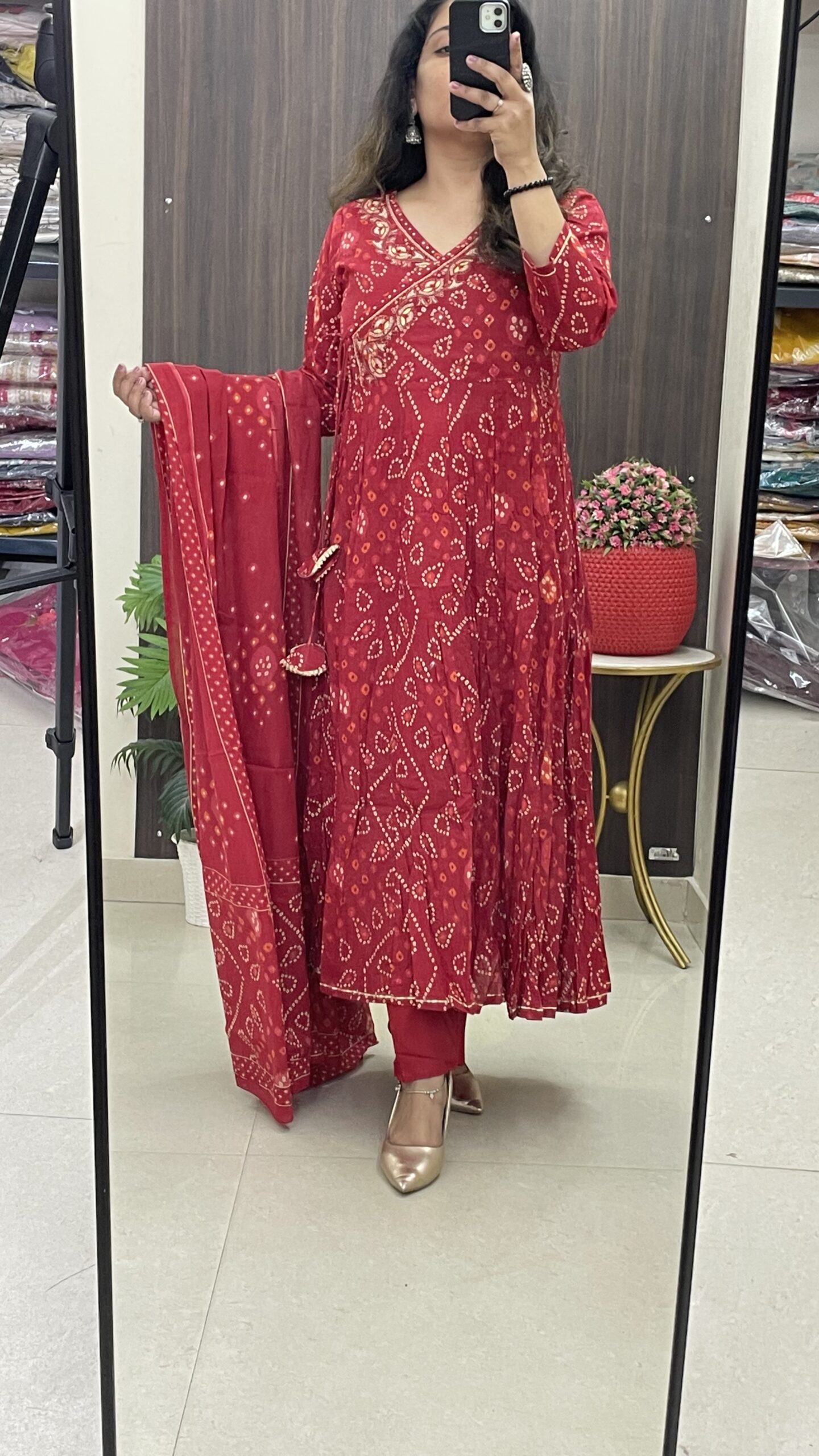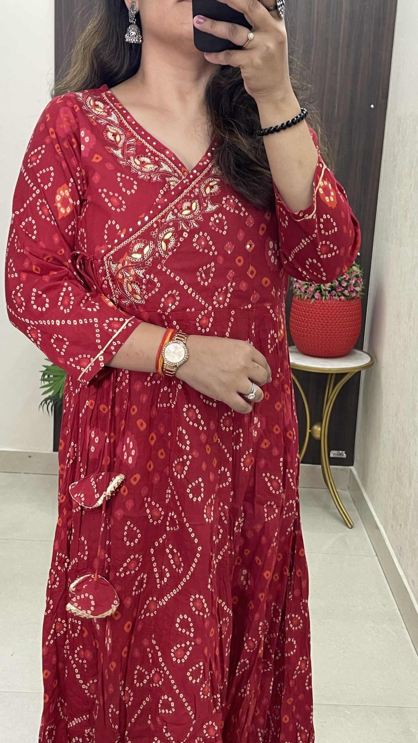 Premium Cotton Bandhej Print Anarkali Kurta with gota detailing and tassels
