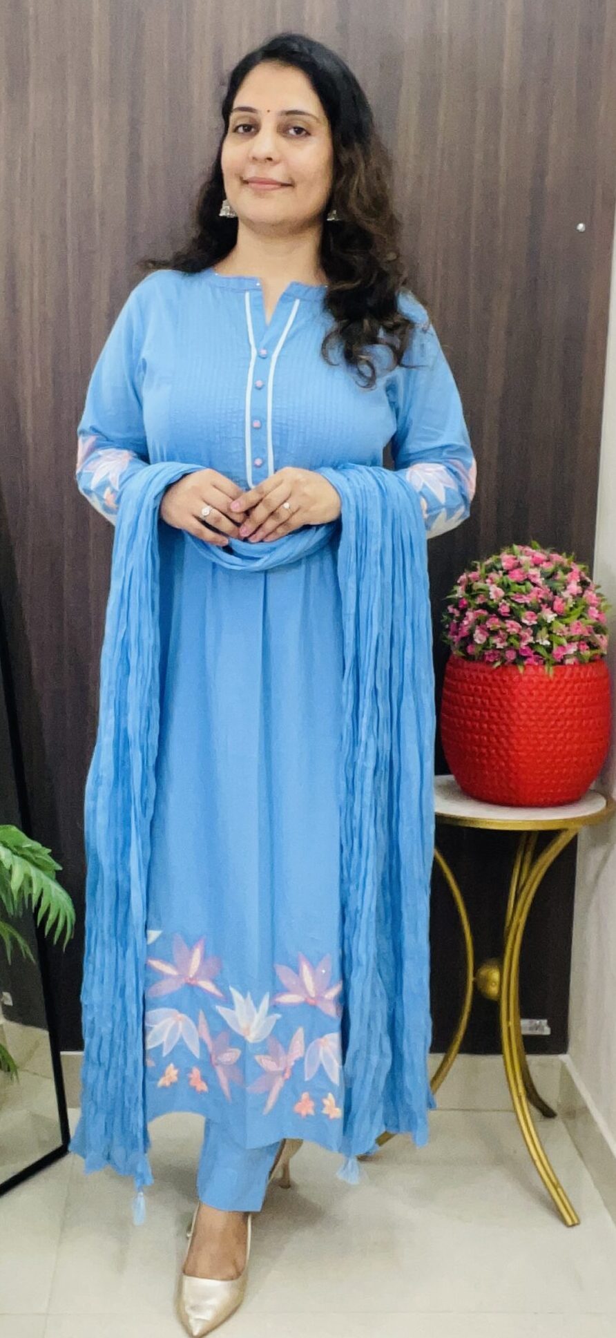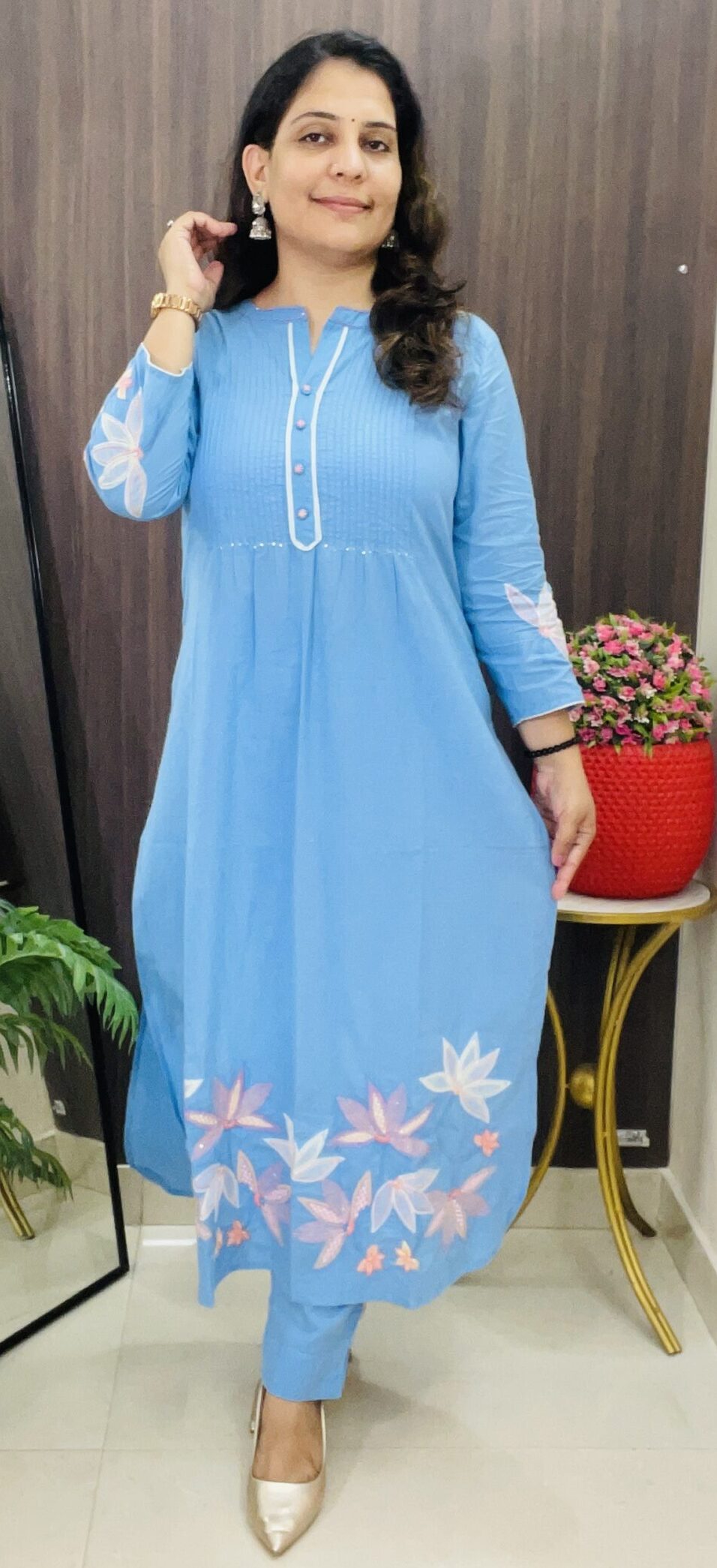 Premium Cotton Kurta crafted with beautiful embroidery on sleeves & hemline, pintex work on yoke