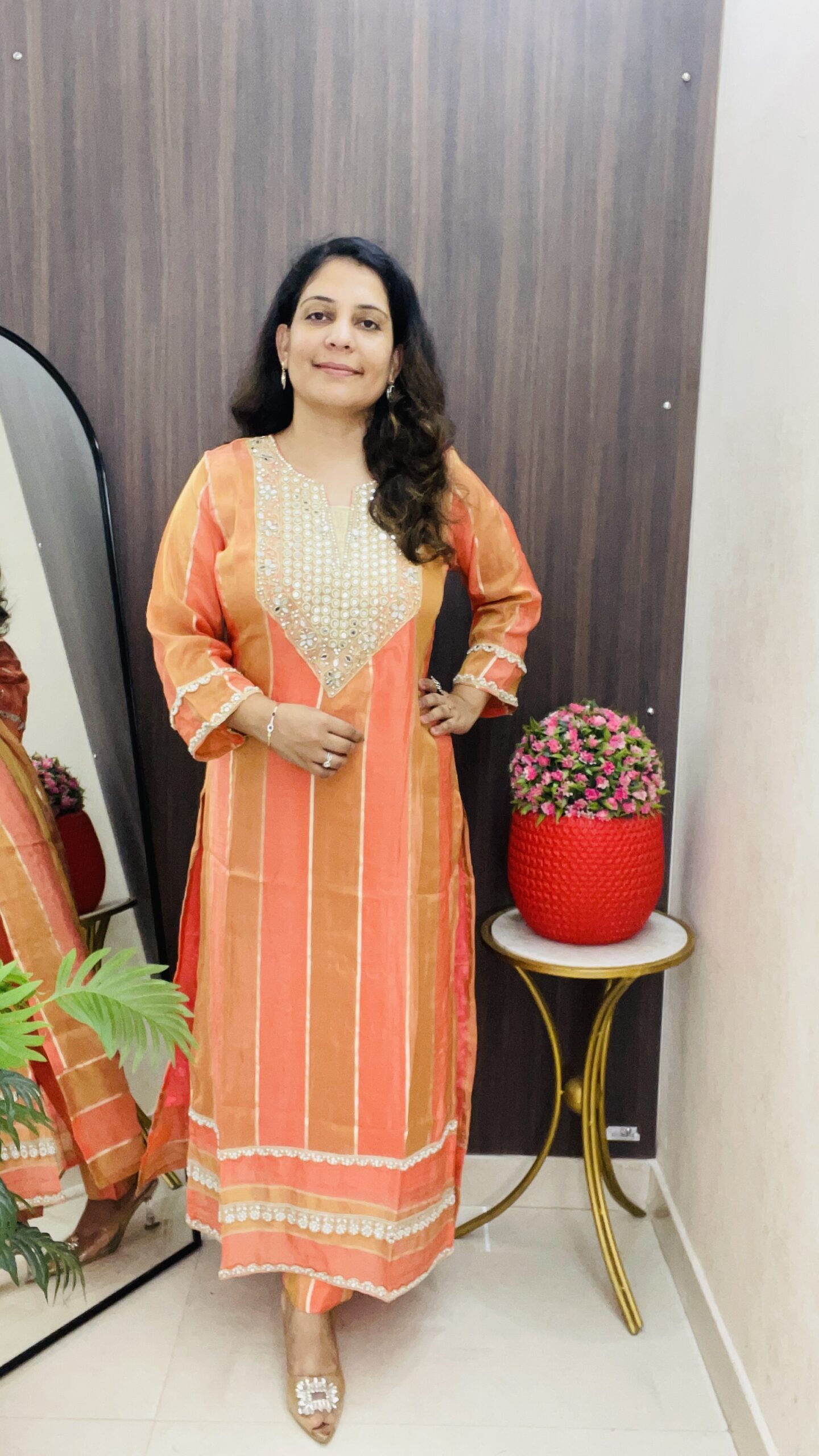 Premium Shimmer Tissue Mirror work kurta with attached lining and pearl work all over